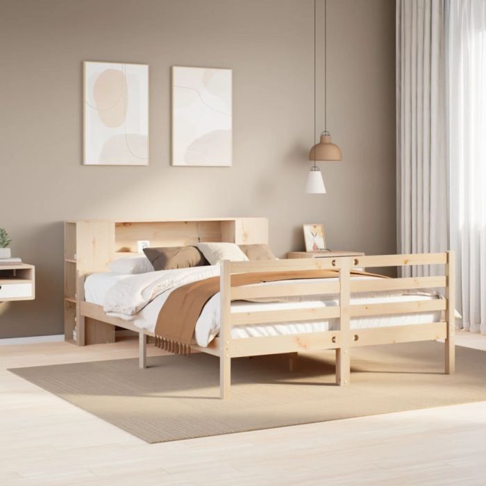 vidaXL Lova su knygų spinta be čiužinio, 135x190cm, pušies masyvas