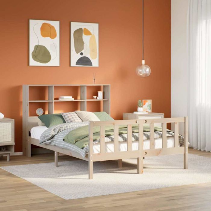 vidaXL Lova su knygų spinta be čiužinio, 160x200cm, pušies masyvas