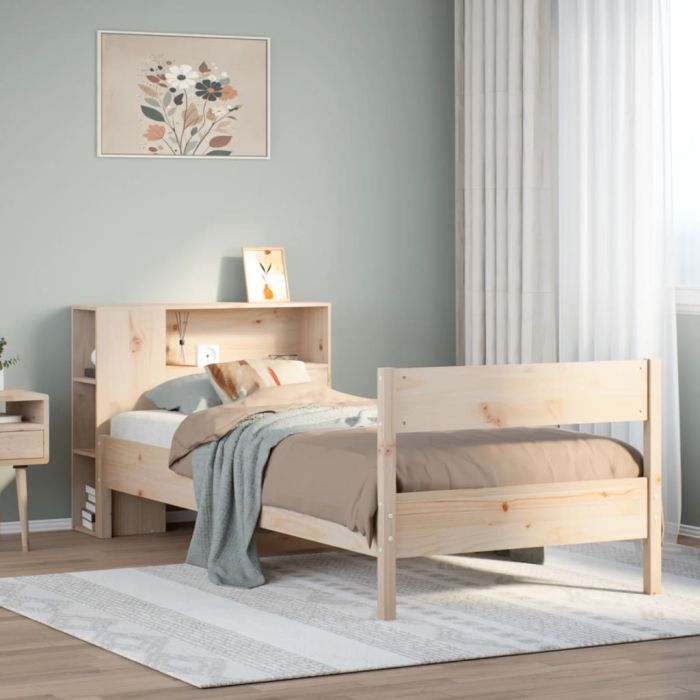 vidaXL Lova su knygų spinta be čiužinio, 75x190cm, pušies masyvas