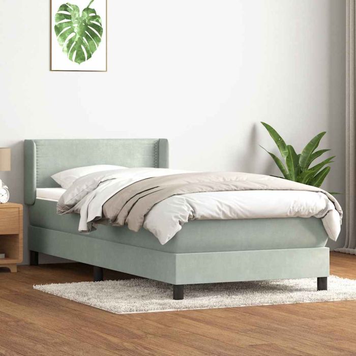 vidaXL Lova su spyruoklėmis ir čiužiniu, pilka, 90x220 cm, aksomas