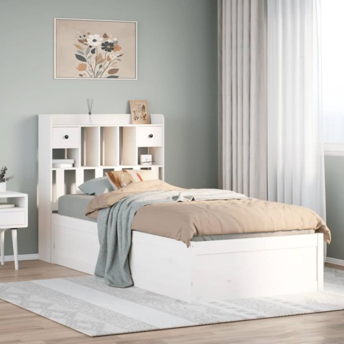 vidaXL Lovos rėmas be čiužinio, balta, 90x190cm, pušies masyvas