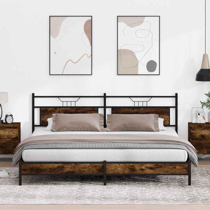 Aprašymas / vidaXL Lovos rėmas be čiužinio, dūminio ąžuolo, 193x201cm, metalas