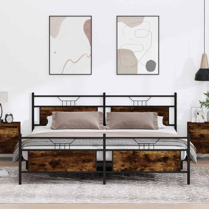 Aprašymas / vidaXL Lovos rėmas be čiužinio, dūminio ąžuolo, 200x200cm, metalas