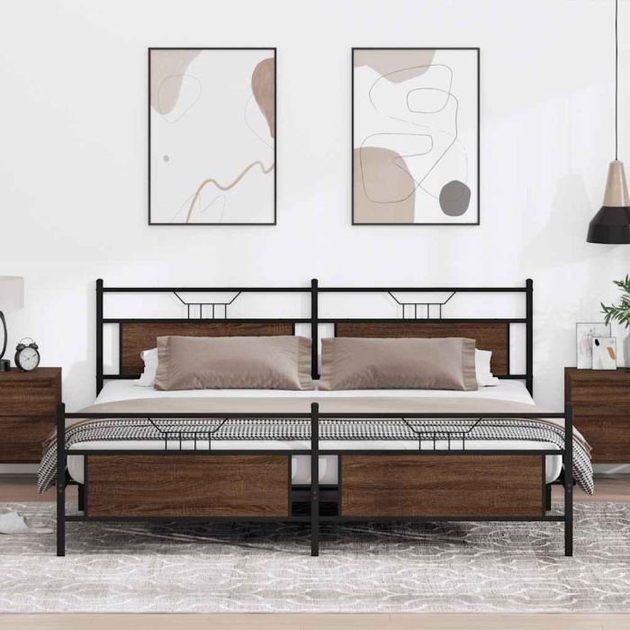 Aprašymas / vidaXL Lovos rėmas be čiužinio, rudas ąžuolo, 193x201cm, metalas