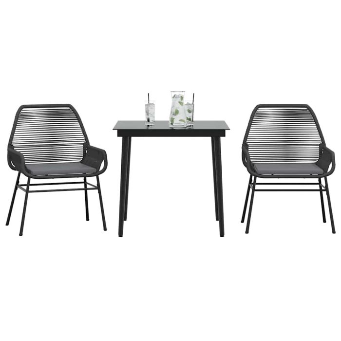 Aprašymas / vidaXL Sodo komplektas, 3 dalių, juodas, poliratanas ir stiklas