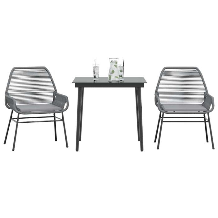 vidaXL Sodo komplektas, 3 dalių, pilkas, poliratanas ir stiklas