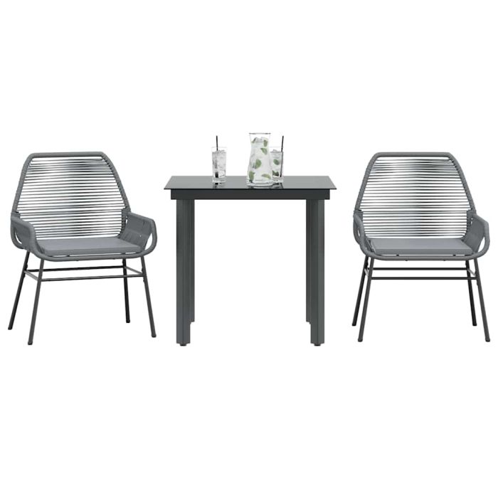 vidaXL Sodo komplektas, 3 dalių, pilkas, poliratanas ir stiklas