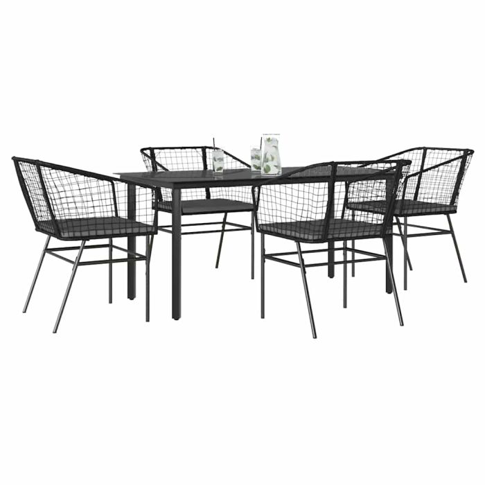 Aprašymas / vidaXL Sodo komplektas, 5 dalių, juodas, poliratanas ir stiklas