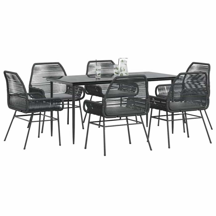 Aprašymas / vidaXL Sodo komplektas, 7 dalių, juodas, poliratanas ir akacija