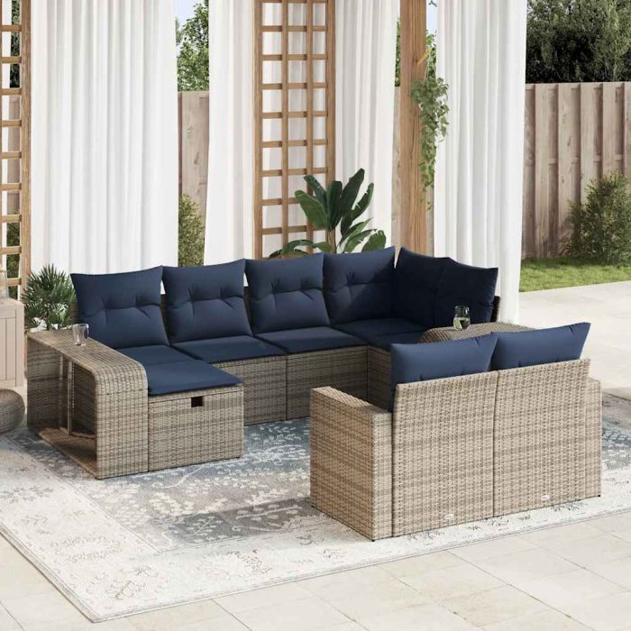 Aprašymas / vidaXL Sodo komplektas su pagalvėlėmis, 10 dalių, pilkas, poliratanas
