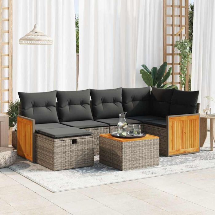 Aprašymas / vidaXL Sofos komplektas su pagalvėlėmis, 7 dalių, pilkas, poliratanas