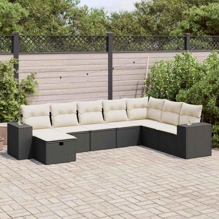 Aprašymas / vidaXL Sofos komplektas su pagalvėlėmis, 8 dalių, juodas, poliratanas