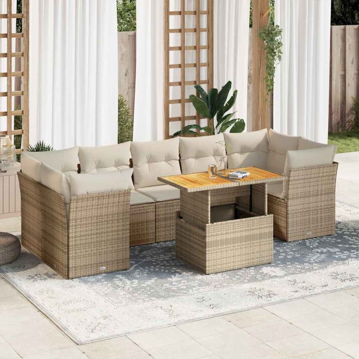 Aprašymas / vidaXL Sofos komplektas su pagalvėlėmis, 8 dalių, smėlio, poliratanas