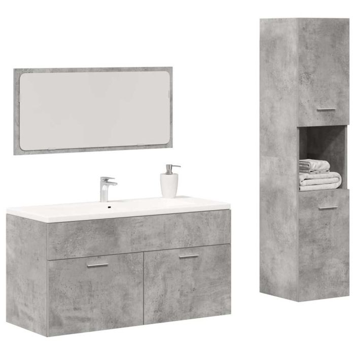 Aprašymas / vidaXL Vonios baldų komplektas, 3 dalių, betono pilkas, mediena