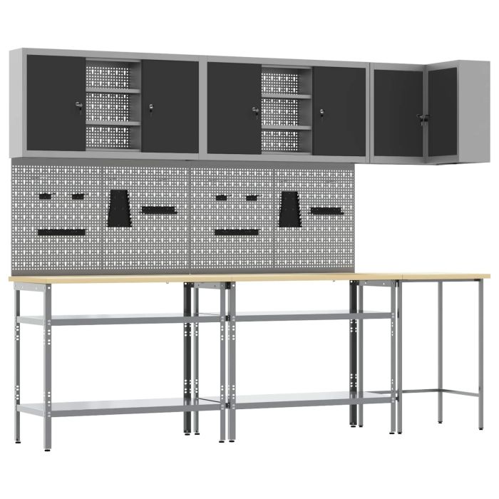 Aprašymas / vidaXL Darbo spintos rinkinys su lentyna 10 pcs Juoda ir pilka