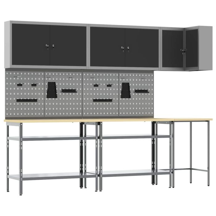 Aprašymas / vidaXL Darbo spintos rinkinys su lentyna 10 pcs Juoda ir pilka