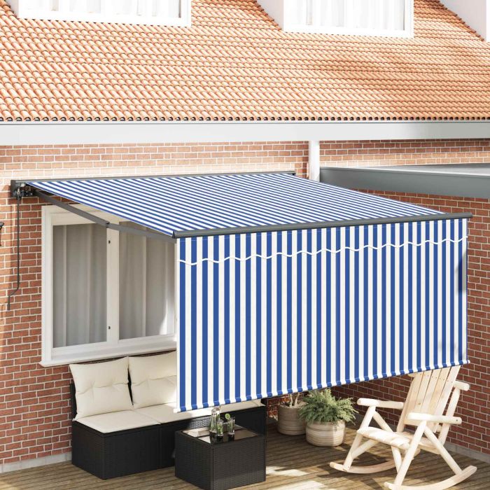 Aprašymas / vidaXL Ištraukiama markizė Mėlyna ir balta 300 x 250 cm
