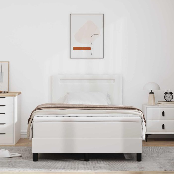 Aprašymas / vidaXL Kiemas lova su čiužiniu Balta 120 x 200 cm Dirbtinė oda