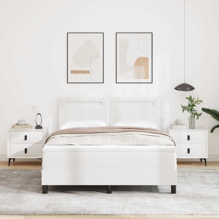 Aprašymas / vidaXL Kiemas lova su čiužiniu Balta 160 x 200 cm Dirbtinė oda