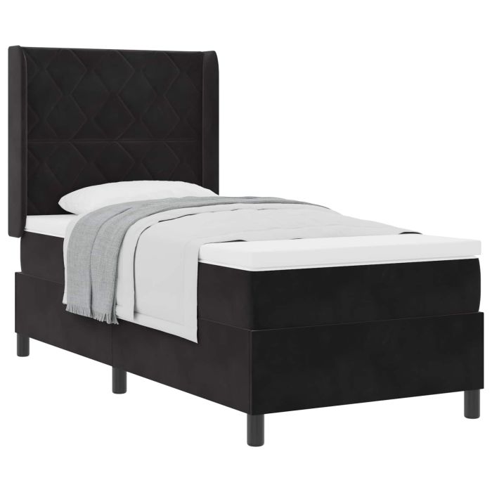 Aprašymas / vidaXL Kiemas lova su čiužiniu Juoda 100 x 200 cm Aksomas