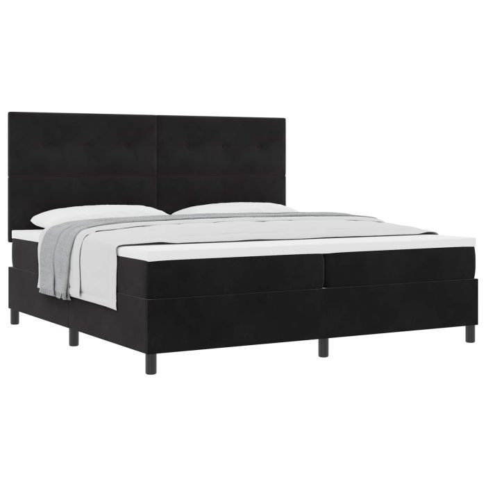 Aprašymas / vidaXL Kiemas lova su čiužiniu Juodas 200 x 200 cm Aksomas