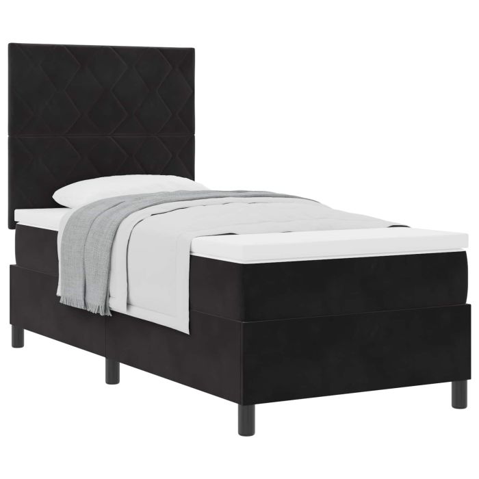 Aprašymas / vidaXL Kiemas lova su čiužiniu Juodas 90 x 190 cm Aksomas
