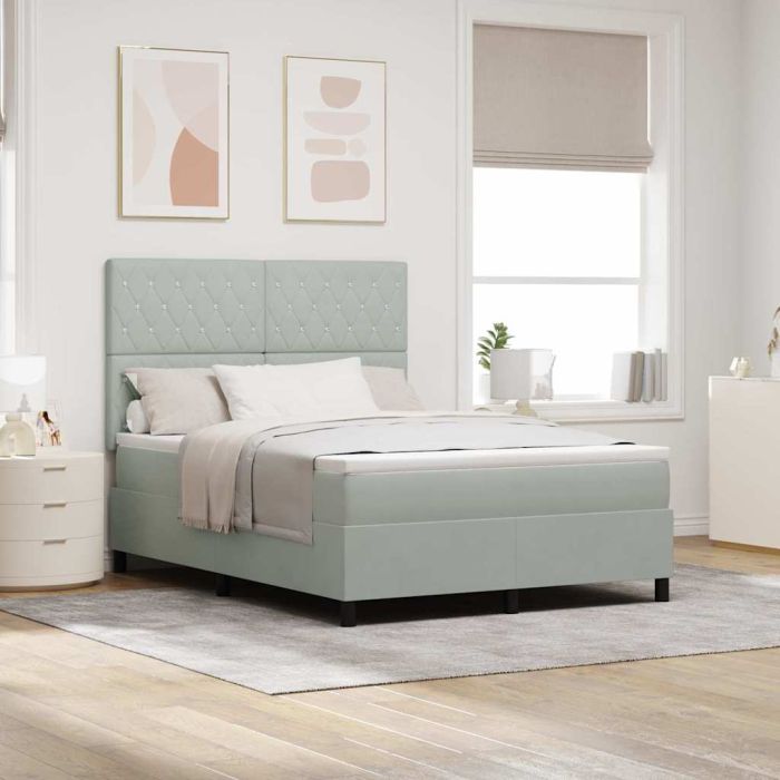 vidaXL Kiemas lova su čiužiniu Šviesiai pilka 140 x 200 cm Aksomas