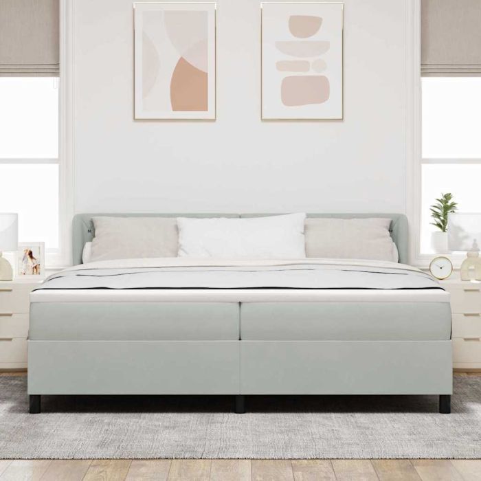 vidaXL Kiemas lova su čiužiniu Šviesiai pilka 200 x 200 cm Aksomas