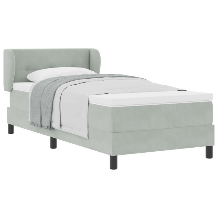 Aprašymas / vidaXL Kiemas lova su čiužiniu Šviesiai pilka 90 x 200 cm Aksomas
