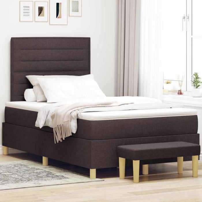 vidaXL Kiemas lova su čiužiniu Tamsiai ruda 120 x 200 cm audinys