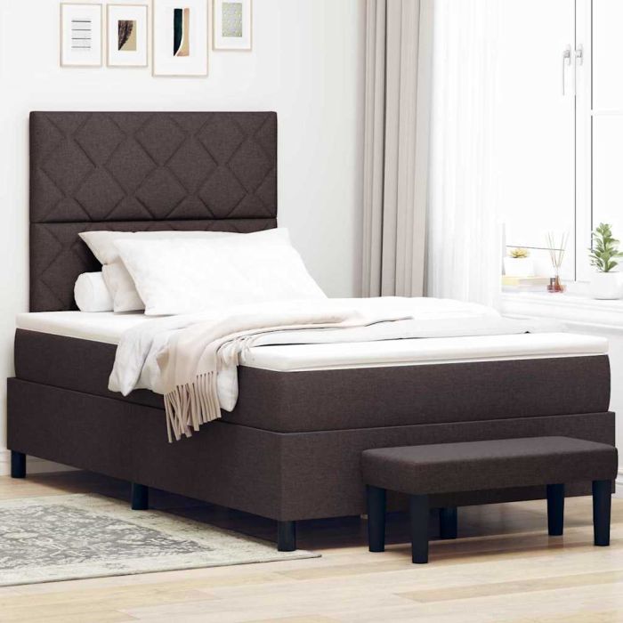 vidaXL Kiemas lova su čiužiniu Tamsiai rudas 120 x 200 cm audinys