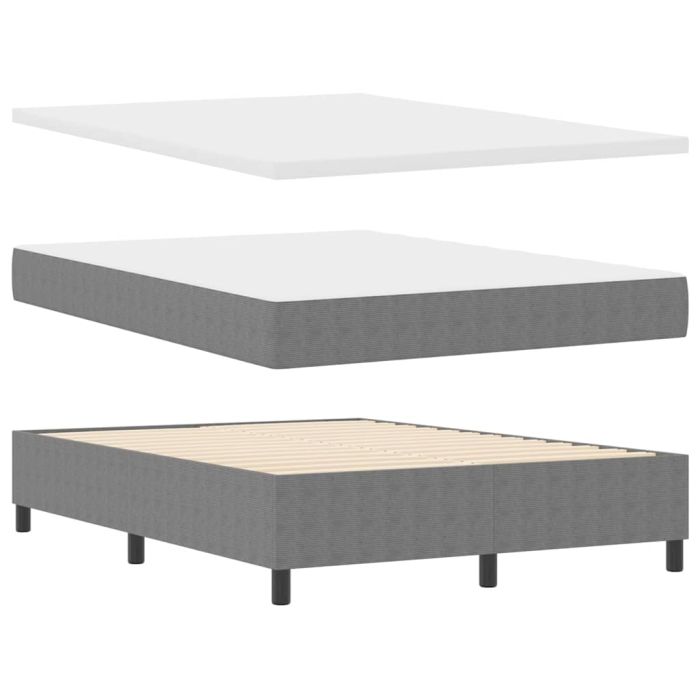 - Plastikinių kojelių stulpai: Ši box spring lova remiasi ant bendrai tvirtų plastikinių kojelių, užtikrinančiomis stabilumą. Kojelės puikiai atitinka lovos minimalistinį stilių ir nesukelia trikdžių, todėl ji stabiliai laikosi vietoje per naktį.