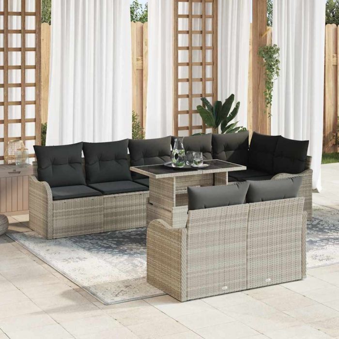 Aprašymas / vidaXL Lauko poilsio komplektas 9 pcs Šviesiai pilka Poli ratanas