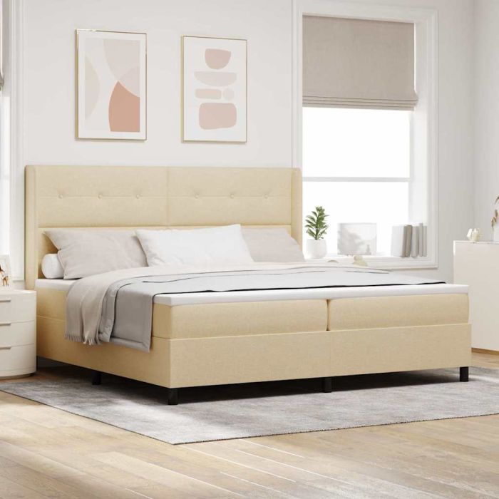 vidaXL LED Čiužinio Lova su čiužiniu Kreminė 200 x 200 cm audinys