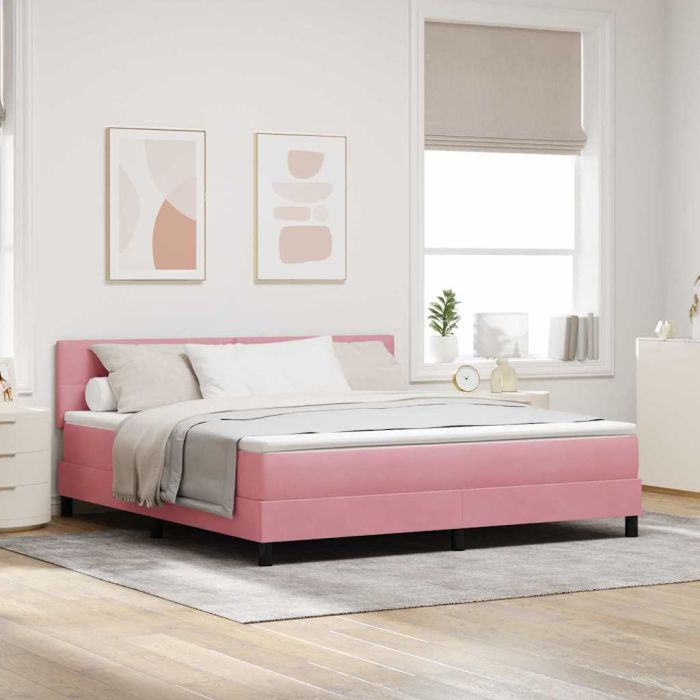 vidaXL LED Čiužinio Lova su čiužiniu Rožinė 180 x 200 cm Aksomas