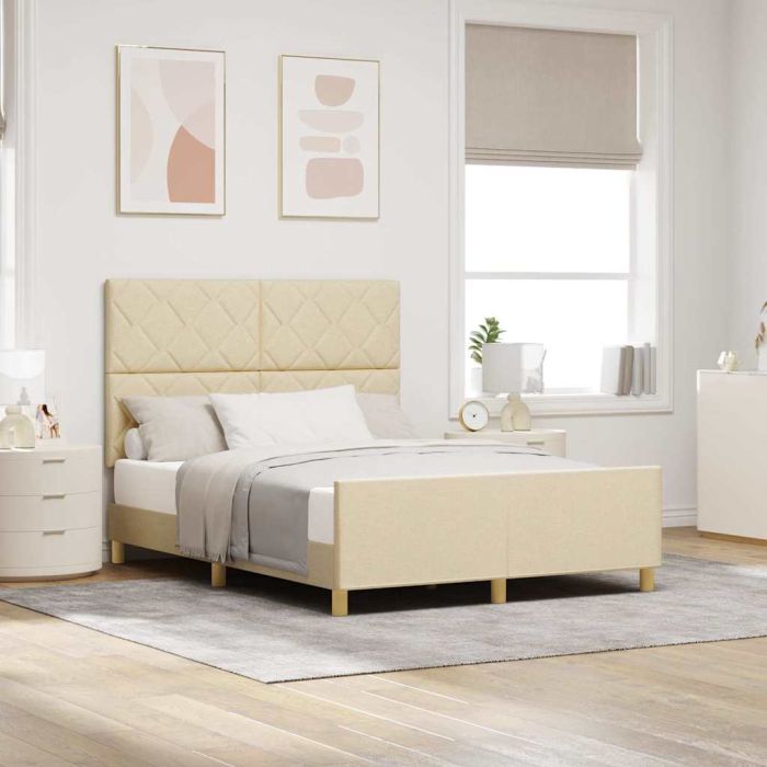 Aprašymas / vidaXL Lovos rėmas su galvūgalio Kreminė 160 x 200 cm audinys