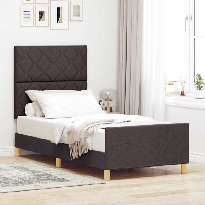 Aprašymas / vidaXL Lovos rėmas su galvūgalio Tamsiai ruda 100 x 200 cm audinys