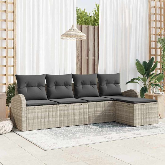 Aprašymas / vidaXL Sodo Sofų Rinkinys 5 pcs Šviesiai pilka poliratanas