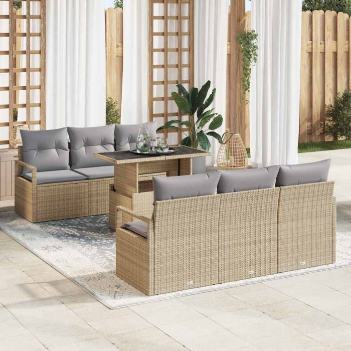Aprašymas / vidaXL Sodo Sofų Rinkinys 7 pcs Bežinė ir šviesiai pilka poliratanas