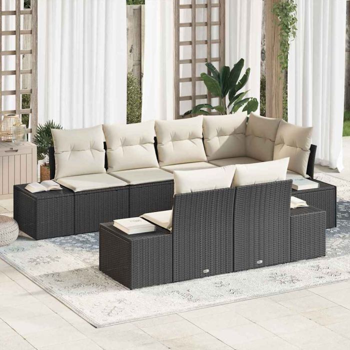 Aprašymas / vidaXL Sodo Sofų Rinkinys 7 pcs Juoda ir kreminė poliratanas