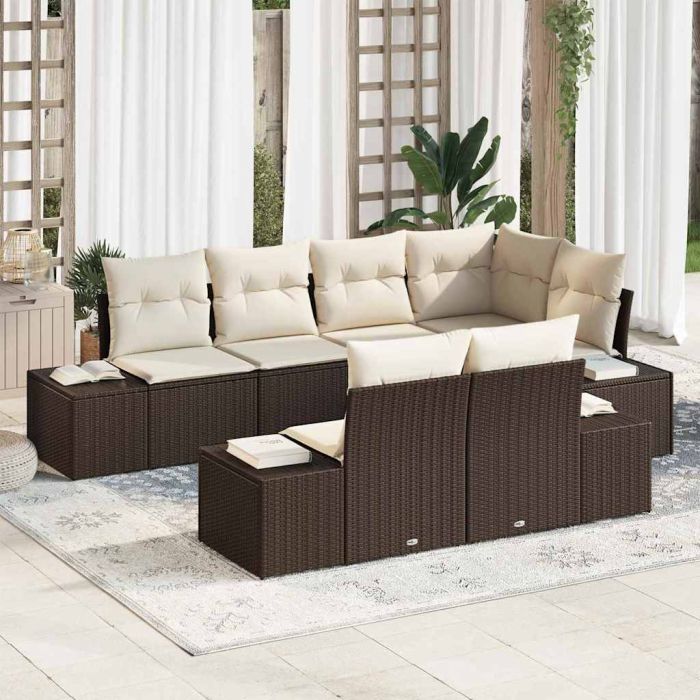 Aprašymas / vidaXL Sodo Sofų Rinkinys 7 pcs Ruda ir kreminė Poli ratanas