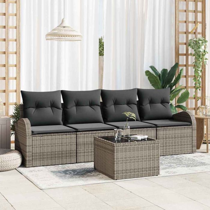 Šis modernus sodo sofos komplektas puikiai sujungia stilių ir funkcionalumą, tad idealiai tinka bet kuriai lauko terasai ar sodo aplinkai. Elegantiškos, minimalistiškos linijos ir šiuolaikiškas dizainas pagerina jūsų lauko patirtį, siūlydamas patogią sėdėjimo vietą susibūrimams su draugais ir šeima. Modulinė struktūra leidžia kurti įvairias konfigūracijas, o tvarios medžiagos užtikrina atsparumą sezoniniams pokyčiams.