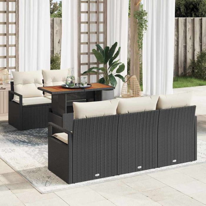 Aprašymas / vidaXL Sodo Sofų Rinkinys su pagalve 6 pcs Juoda ir kreminė