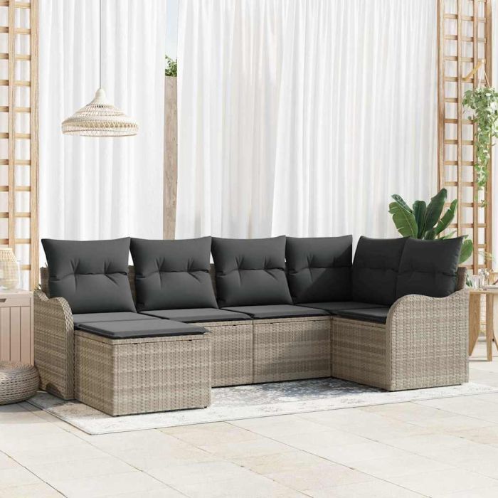 Aprašymas / vidaXL Sodo Sofų Rinkinys su pagalve 6 pcs Šviesiai pilka Poli ratanas