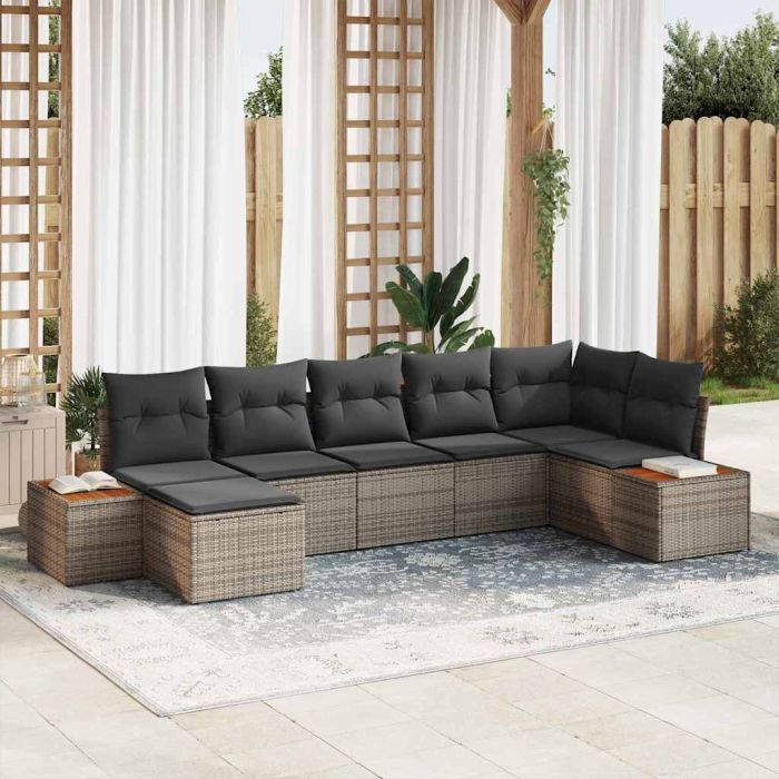 Aprašymas / vidaXL Sodo Sofų Rinkinys su pagalve 7 pcs Pilka poliratanas