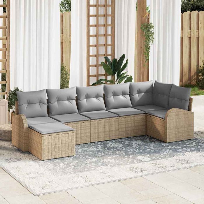 Aprašymas / vidaXL Sodo Sofų Rinkinys su pagalve 7 pcs Smėlio Poli ratanas