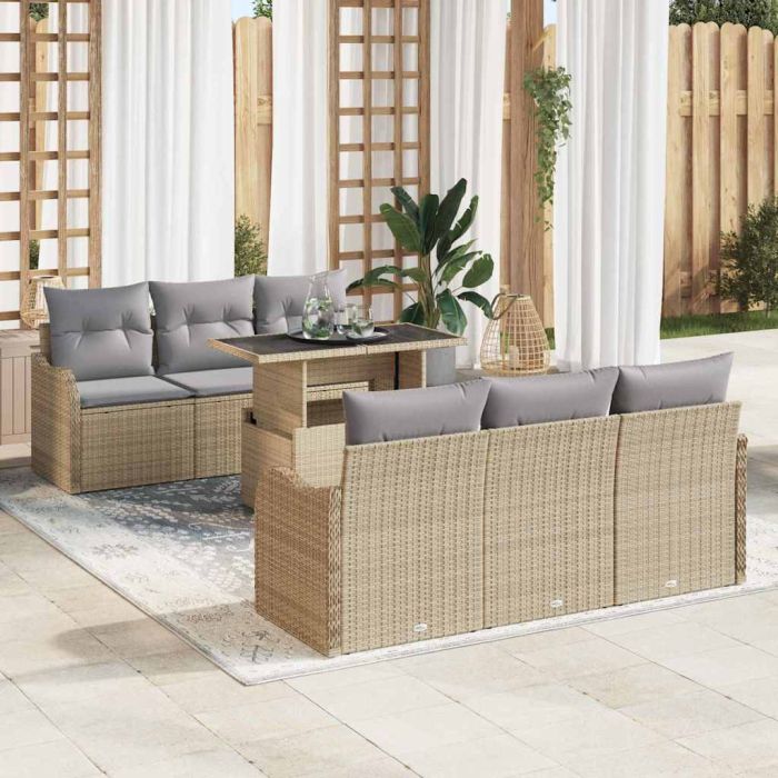 Aprašymas / vidaXL Sodo Sofų Rinkinys su pagalve 7 pcs Smėlio Poli ratanas