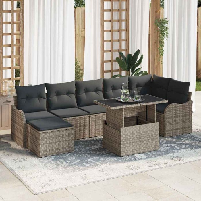 Aprašymas / vidaXL Sodo Sofų Rinkinys su pagalve 8 pcs Pilka Poli ratanas