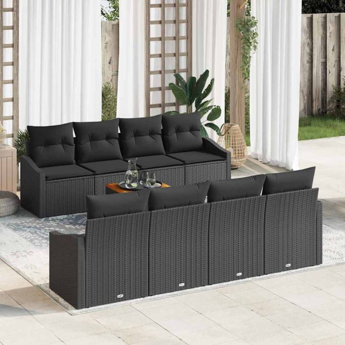 Aprašymas / vidaXL Sodo Sofų Rinkinys su pagalve 9 pcs Juoda poliratanas