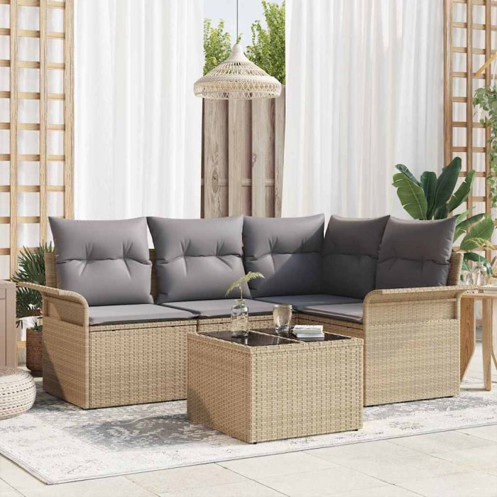 vidaXL Sodo Sofų Rinkinys su saugykla 5 pcs Smėlio poliratanas
